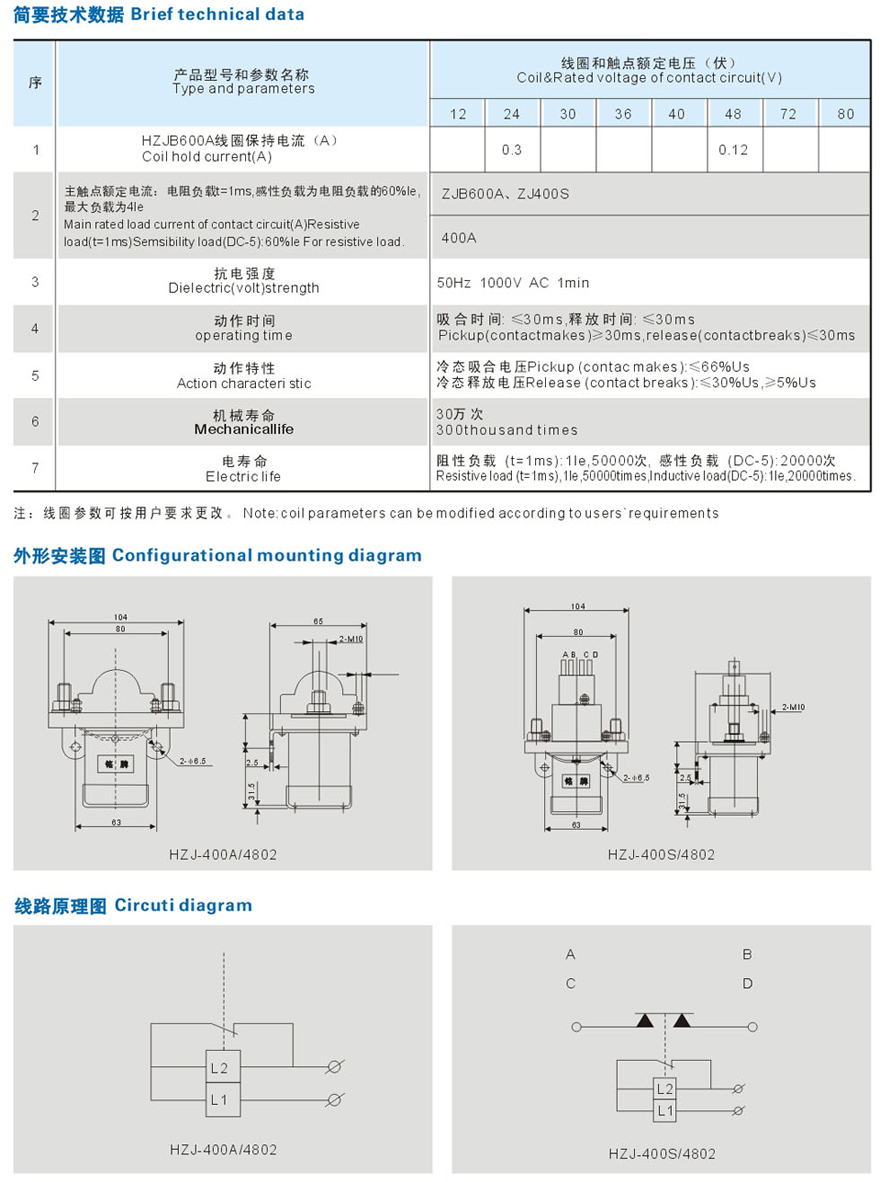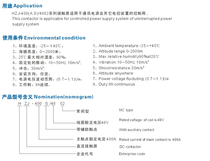 HZJ-400A/S-4802直流接触器